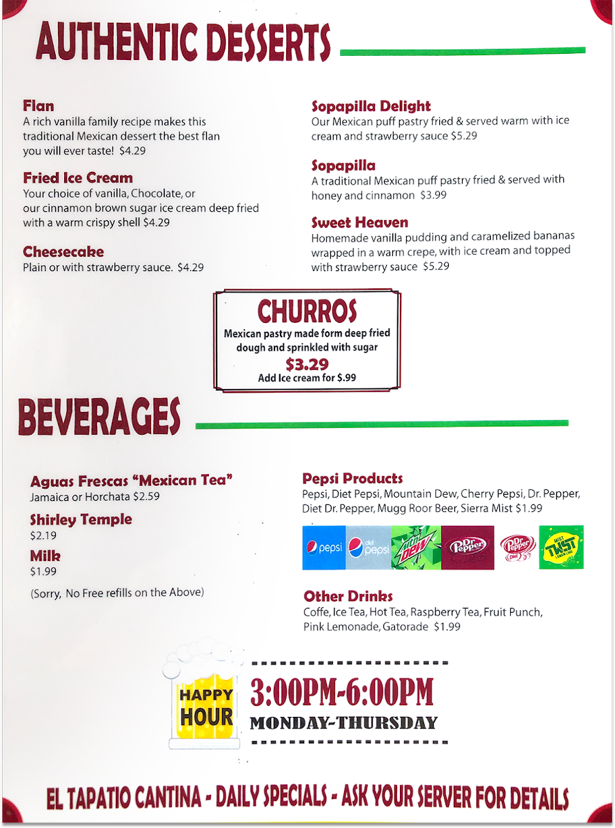 Introducing the Menu at El Tapatio Authentic Mexican Restaurant